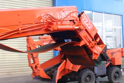 5、本機采用電動全液壓傳動,液壓行走、挖掘采集、輸送、裝車四種功能,機構緊湊,推進力大,扒取范圍廣,可以全斷面裝巖,不留死角,不需人工輔助清理工作面