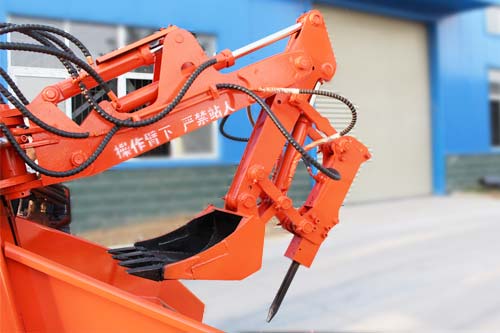 120型破碎錘扒渣機主要是為大型巷道而設計,整機主要優勢為:挖掘系統大小臂配有標準型和加長型,標準型大小臂長度為1.05m和1.0m,加長型大小臂長度為1.2m和1.25m,供用戶根據巷道截面大小定制選裝。建議2.6×2.6㎡截面巷道選用標準型大小臂,3.0×3.0㎡及以上截面巷道選用加長型大小臂,以提高工作效率。